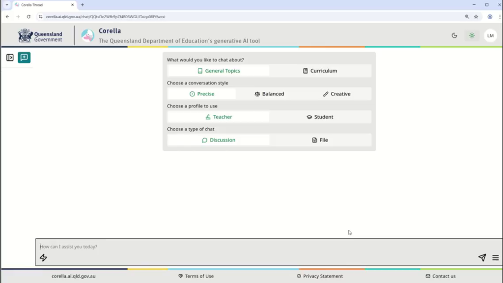 Corella AI is a text-based generative AI assistant available to Queensland state school teachers and, in selected year levels, students.